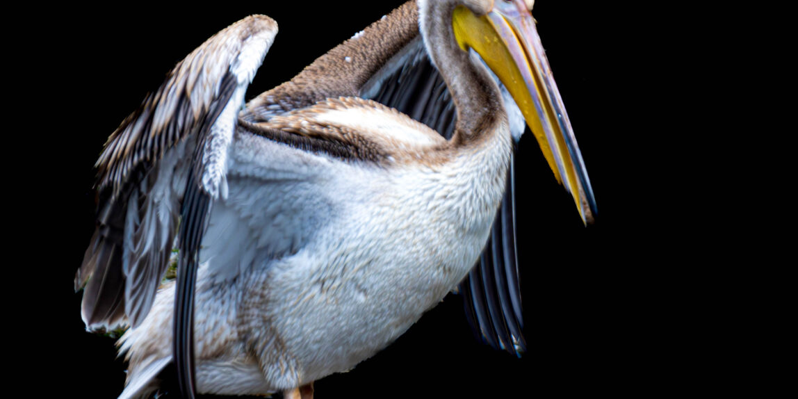 Der Pelikan ist ein großer Wasservogel mit langem Schnabel. Besonders auffällig ist der Kehlsack unter dem Schnabel.